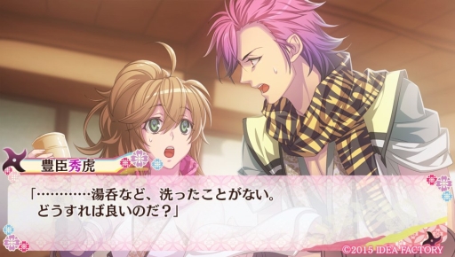 ところが,秀虎が豊臣家の世継ぎだと名乗ったことで,主人公は途端に緊張してしまい……制御できるようになったと思っていたメロメロの術を発動させてしまうのです。しかも,その効果がパワーアップ! 術にかかった人は,主人公を自分の恋人や婚約者だと思い込んで,今まで以上に甘い言葉をかけてくるように……。そのため主人公は,再びメロメロの術を制御すべく,相棒と鍛錬をしなくてはいけなくなります。