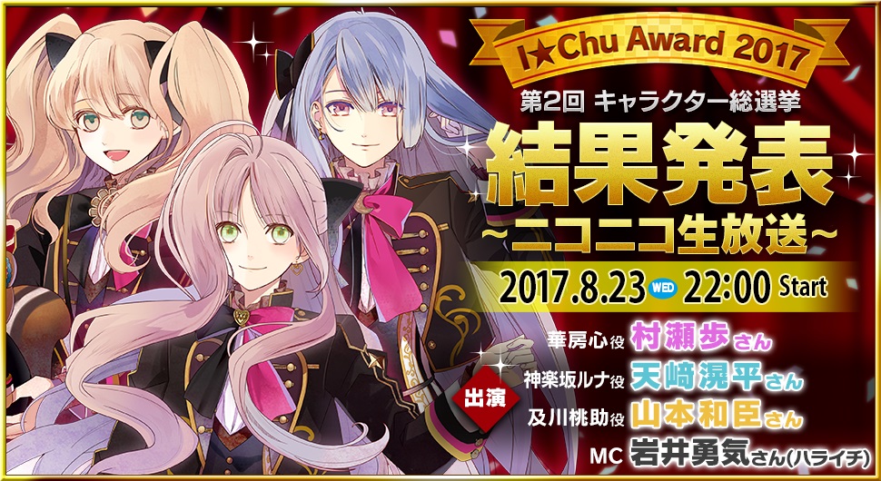 「アイ★チュウ」,キャラクター総選挙「I★Chu Award〜2017〜」の結果発表を8月23日にニコ生で配信