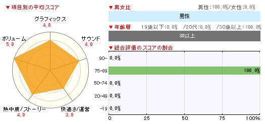 グラフィックス サウンド 快適さ/運営 熱中度/ストーリー ボリューム 4 4 3 4 5