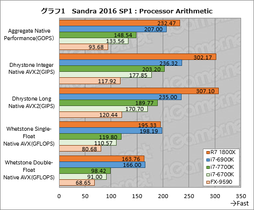 相対的には整数演算が速いRyzen 7 1800X