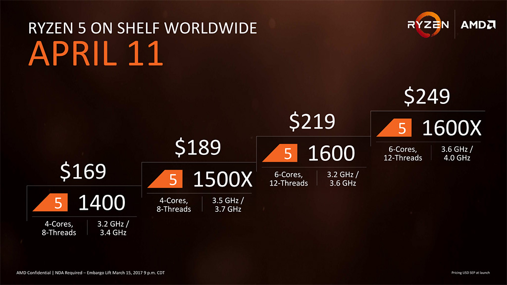 「Ryzen 5」は4月11日に発売決定。価格は6コア12スレッドの上位モデルが3万3264円,4コア8スレッドの上位モデルが2万5704円に