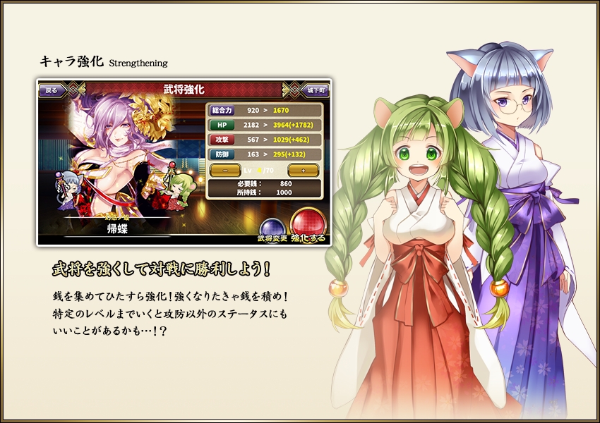 「戦国アスカZERO」,キャラクターの強化と進化システムを公開