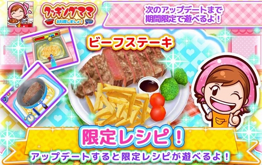 Version1.86.0にアップデートすると限定レシピ「ビーフステーキ」が遊べるようになります。