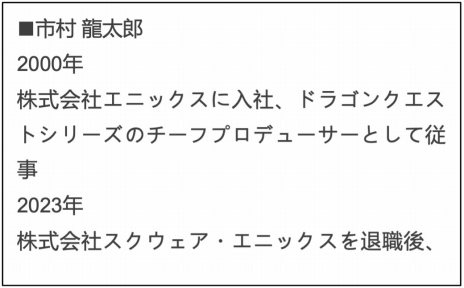 代表取締役社長には,スクウェア・エニックスで「ドラゴンクエストVIII 空と海と大地と呪われし姫君」や「ドラゴンクエストIX 星空の守り人」などのプロデューサーを務めた市村龍太郎氏が就任した。取締役には,「ドラゴンクエスト ダイの大冒険」などを手掛けた小倉隆史氏が就任している。