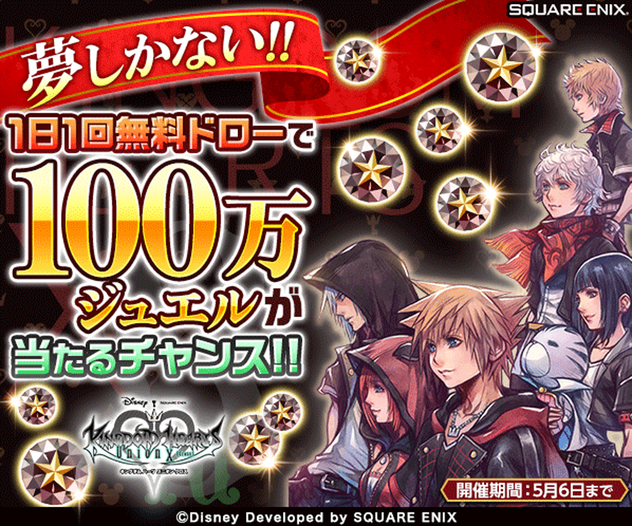 「KINGDOM HEARTS Union χ」,100万ジュエル大抽選会キャンペーンを開催