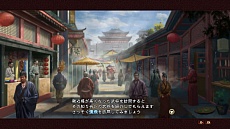 上記の写真は、英傑伝モードの最初のシナリオ「桃園結義」の序盤の一幕です。劉備を主人公としたこのシナリオでは、関羽、張飛と義兄弟の誓いを立てる「桃園の誓い」をモチーフにしており、親しい武将を訪問して知り合いを紹介してもらったり、都市での名品購入などのゲームシステムを自然と物語を楽しむ中で理解することができます。