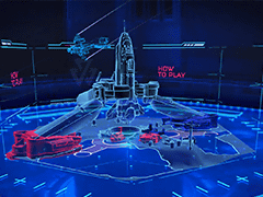 通路をさらに進むと,六角形のテーブルが置いてあり,6人のユーザーは,その各辺の前に立つよう指示される。この六角形のテーブルには,直線基調の図柄が描かれていて,HoloLensを通して見ると,この上空に女版マスターチーフのようなスパルタン兵士が出現し,戦闘のブリーフィングが始まるのだった。