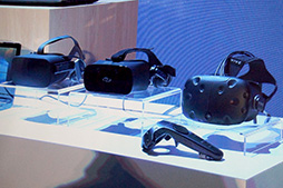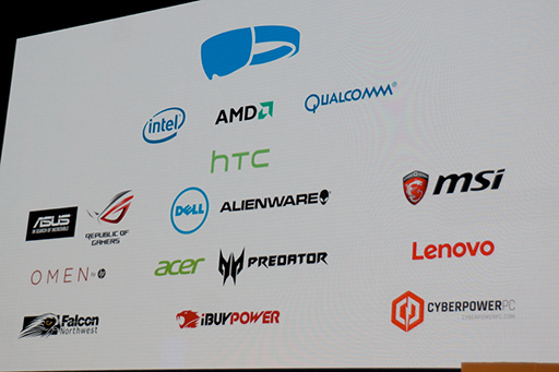 ゲーマー向けPCに関する説明では,ハイエンドのデスクトップPCやノートPCだけでなく,ViveやRiftといったVR HMDも紹介が行われており,とくにデモでも用いられたViveは,大きくクローズアップされていた。