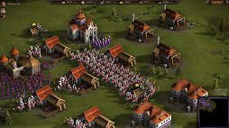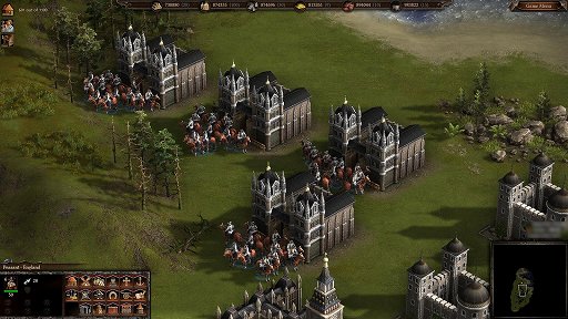 当時コサックスで衝撃を受けたのは,「大軍同士のぶつかり合い」を表現したゲームだったということだ。当時の歴史モノRTSといえばマイクロソフトの「Age of Empires」シリーズが人気だったが,同作でマップ上に登場するユニット数は最大でも数百単位。それに対してコサックスは最大8000体という,まさに桁違いのユニットを登場させられたのだ。それに合わせて,大量のユニットをスピーディに生産できるゲームバランスとなっており,ユニットによっては歩兵育成所から数珠つなぎに生産されていくほどだった。