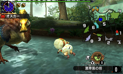 オトモスキル「モンスター探知の術」を装備すると表示されるモンスターのアイコンが変化し、警戒状態なども分かる |