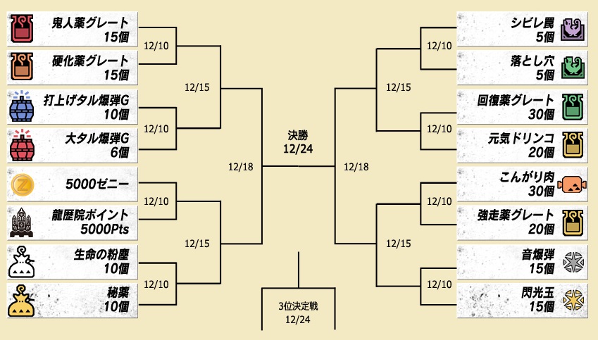 「MHX」ゲーム内の配信アイテムを決める投票トーナメントを実施
