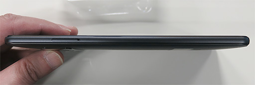 左側面にはSIMカードスロットを装備。トレイ上に2つのNano SIMカードを載せられるタイプで,2枚のSIMカードを使ったデュアルSIMデュアルスタンバイに対応する