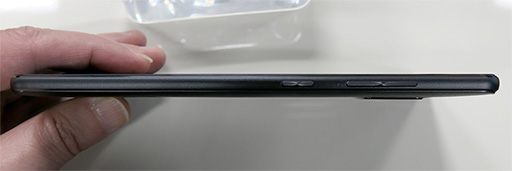 右側面には[電源/スリープ]ボタンと音量調整ボタンが並ぶ