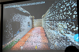 阿部直人氏は,自分で撮影してきたというレンガ造りの建物をデータ化してデモを行っていた。