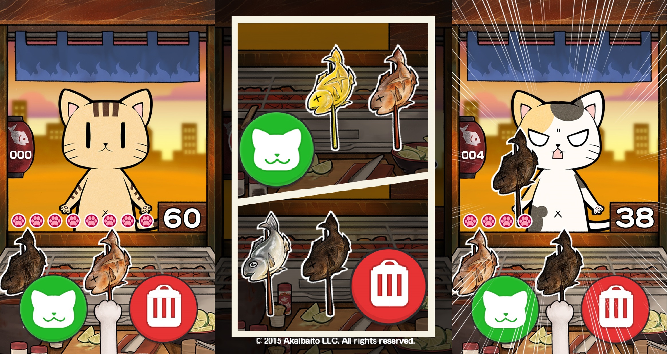 「焼きざかにゃん」が配信開始。おいしい焼き魚を食べさせ高得点を狙おう