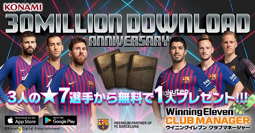 「ウイイレ クラブマネージャー」,世界累計3000万ダウンロード突破記念キャンペーンが開催