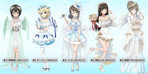 このガチャには,ジューンブライド2023衣装に身を包んだ生徒が登場する。今年ジューンブライド衣装を着たのは河嶋 桃,ダージリン,ミカ,西住しほ,島田千代の5人となっており,5人中2人は生徒の母親である。