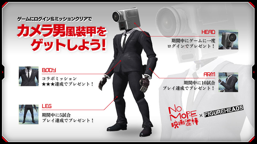 カメラ男を模した装甲の実装も。「フィギュアヘッズ」と「NO MORE映画泥棒」のコラボ企画が7月28日より実施
