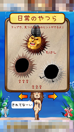 ゲームの舞台となる漁場には4つの岩場があり,時間の経過に合わせてウニが育っていく。プレイヤーは成長しきったウニをタップ操作で捕獲し,神様に献上するのだ。お礼としてお金をもらえるので,どんどん稼いでいこう。