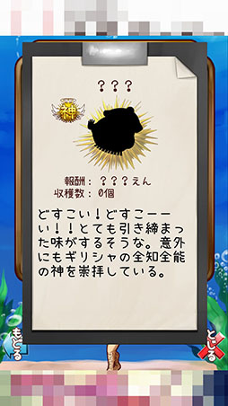 ちなみに,ウニにはさまざまなバリエーションがあり,「ボスうに」「神うに」と呼ばれるレアな品種を納めると報酬をたっぷりもらえる。ゲーム内の図鑑には出現のヒントが書かれているので参考にしてみよう。