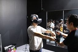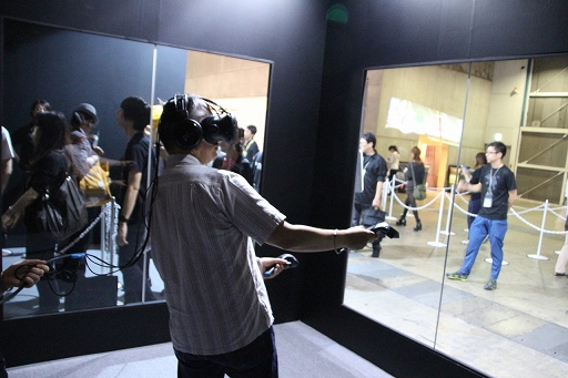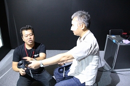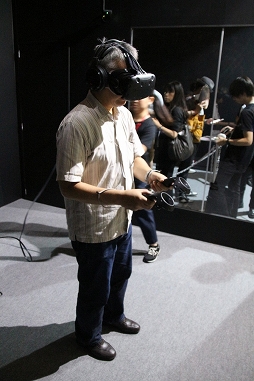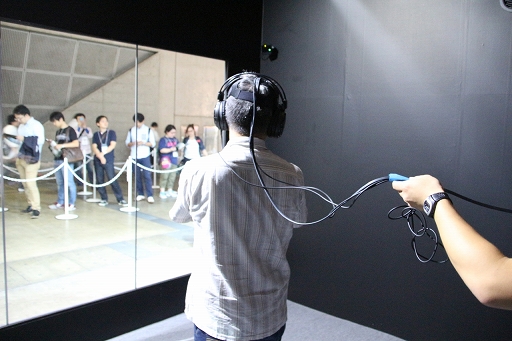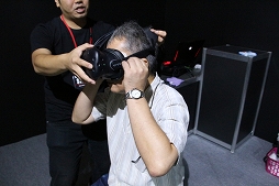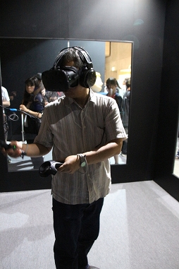 なお,スクウェア・エニックスのブースのVR展示周辺は撮影禁止で,しかも,ゲームのスクリーンショットもモノがVRなのだから無いという,ライターにとってさらに厳しい世界になっていた。仕方がないので,筆者の体験風景をお見せしよう。