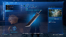 クラウドの武器「バスターソード」の強化画面。キャラクターのステータスを上昇させるものや、マテリア穴の拡張も可能だ。 |
