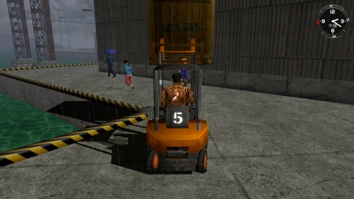 後半に至っては,毎日の大半をフォークリフトのバイトが占めている始末。普通に考えれば,こんな地味でしかない内容をわざわざ描く必要はない(本稿でもカットした)。ゲームなのだから,仇敵が香港へ向かったと知った直後,港で船を探して密航――でもいいはずだ。