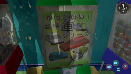 プレイヤーが調べられるオブジェクトの多さも,「シェンムー」を象徴するポイントだ。街角の何気ない自販機も,ただのオブジェクトではなく,ちゃんとジュースを買って飲むことができる。