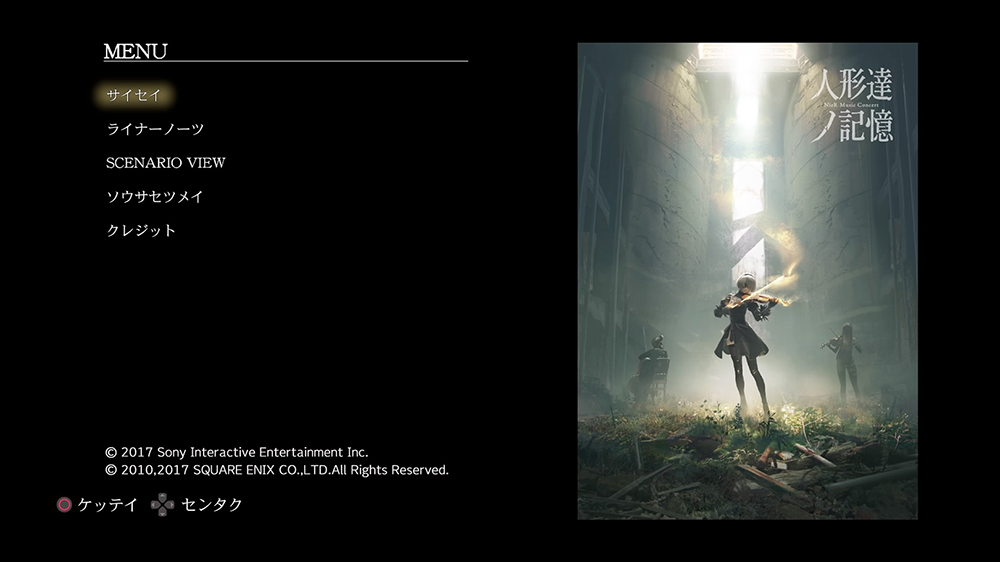 PS4向け映像視聴アプリ「NieR Music Concert《人形達ノ記憶》」が配信開始。2017年開催「NieR」シリーズの同名コンサートの模様を収録