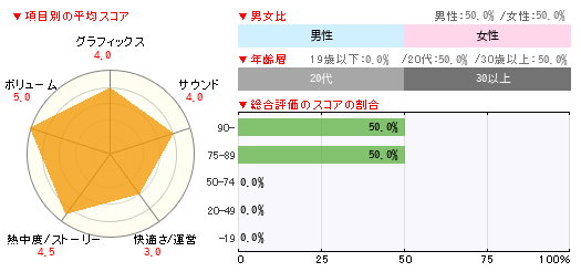 グラフィックス サウンド 快適さ/運営 熱中度/ストーリー ボリューム 3 4 2 4 5 -