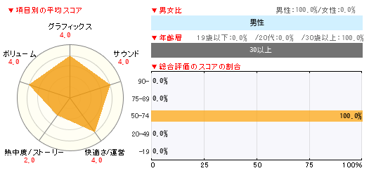 グラフィックス サウンド 快適さ/運営 熱中度/ストーリー ボリューム 4 4 4 2 4