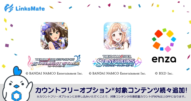 「デレステ」「シャニマス」がLinksMateのカウントフリーオプション対象コンテンツに追加