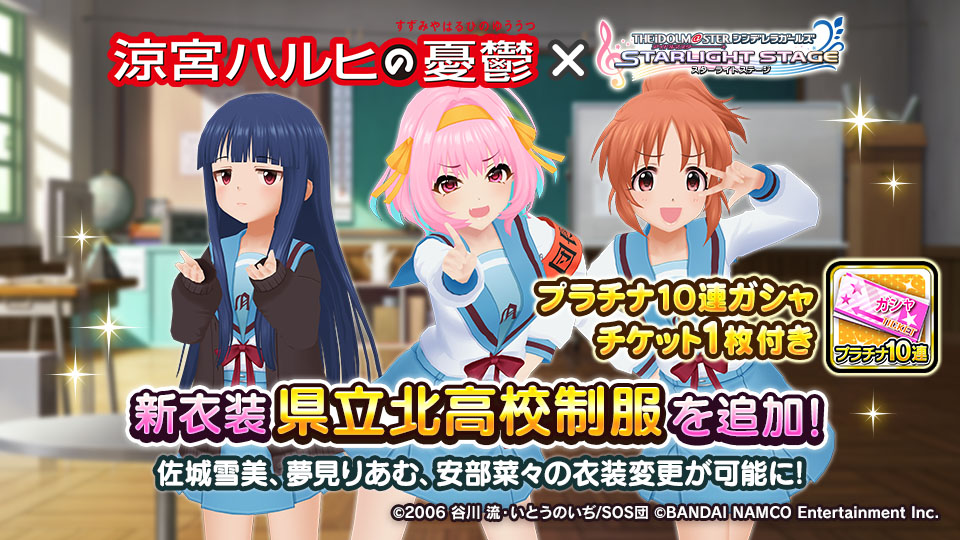 「デレステ」と「涼宮ハルヒの憂鬱」がコラボ。ハレ晴レユカイなどカバー楽曲や特別な衣装がアプリ内に登場