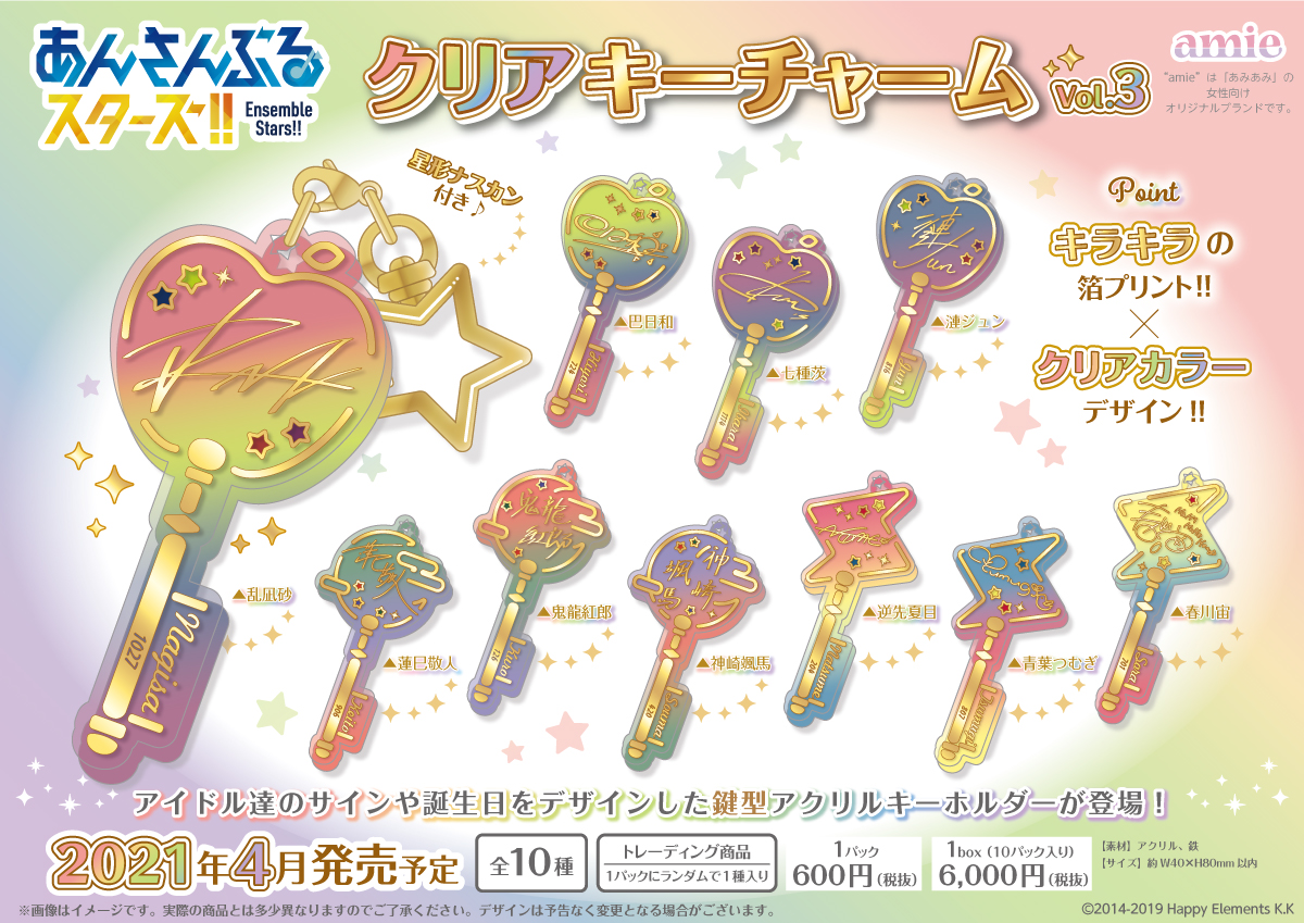 「あんさんぶるスターズ!!」のクリアキーチャームVol.3/Vol.4がグッズブランド“amie”から4月に発売決定