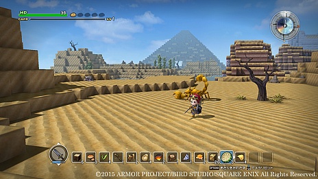 過酷な環境に適応した魔物が生息する砂漠地帯。乾燥した大地にはサボテンの姿も。遠くに見えるのは、もしやピラミッド!?