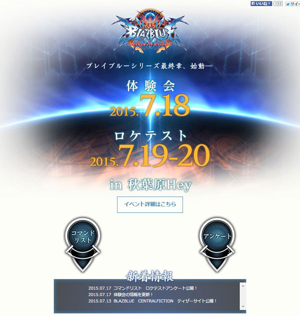 いよいよロケテストが始まる「BLAZBLUE CENTRALFICTION」,各キャラのコマンド表やアンケートページが公開