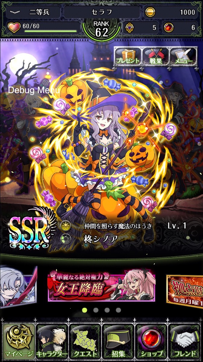 「終わりのセラフ BLOODY BLADES」ハロウィン衣装姿のキャラクターが登場