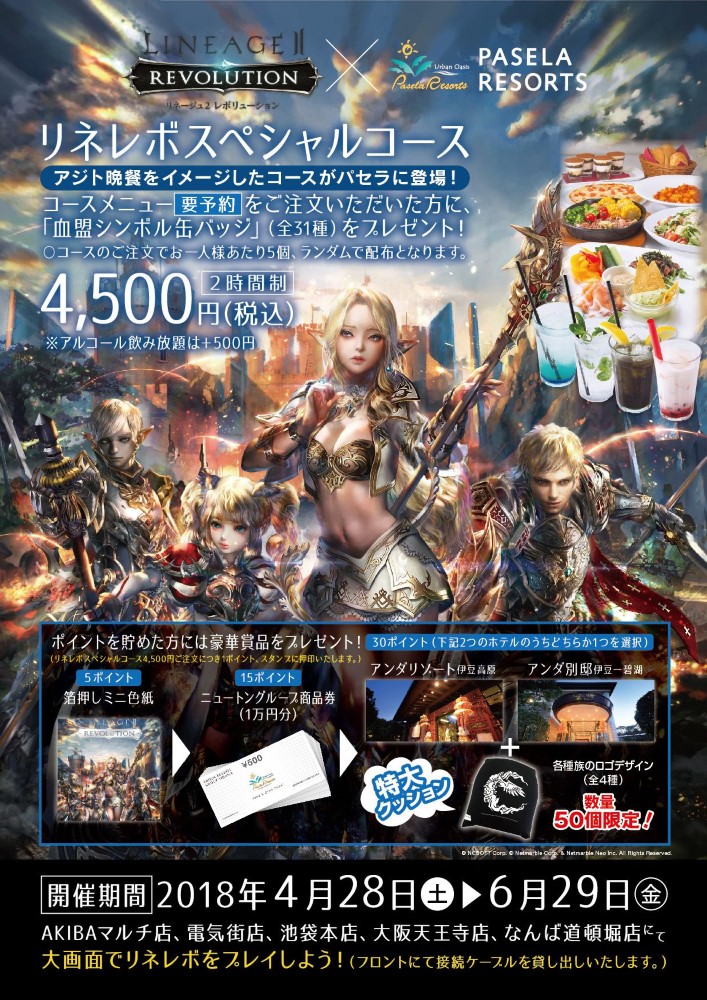 「リネージュ2 レボリューション」,パセラリゾーツとのコラボが4月28日開催
