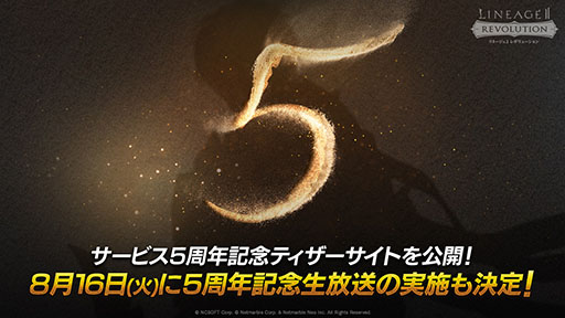 「リネージュ2 レボリューション」のサービス5周年を記念したティザーサイトが公開に。8月16日には記念の生放送を実施予定