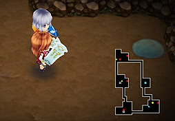 ![]() 右下付近にあるミニマップを見れば部屋と通路の関係が分かるだろう。ちなみに本作はオートマッピング方式となっており,一度歩いた通路や部屋は,そこにあるアイテムも含めてミニマップに表示される |