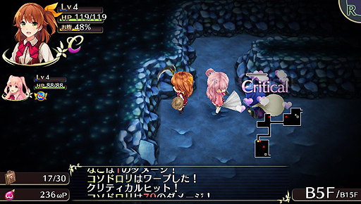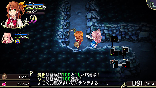 勘違いしないでほしいが,お腹の減少はあくまでも「プレイヤーの行動に伴う」ものであって,プレイの経過時間によるものではない。つまり,ダンジョン挑戦中にPS Vitaを放置してもお腹は減らないのだ。
