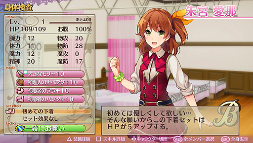 ![]() 下着には「セット効果」があり,少しだけステータスにボーナスが付く |