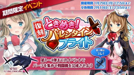 イベントにてドロップするエプロンと「チョコレートの合金」を交換し,限定戦闘機を製造しよう!