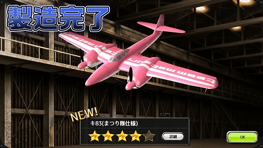 今回のイベントではイベント限定戦闘機素材を集めることで「キ83(まつり隊仕様)」が製造できる! ボーナス値はランダムなのでより高いものを目指して製造しよう!