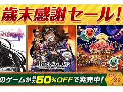 バンダイナムコエンターテインメントは本日,ソニー・インタラクティブエンタテインメントが主催する「歳末感謝セール」へ参加し,同社のダウンロード版タイトルがお得に購入できるをセール開催した。対象となるタイトルは,「テイルズ オブ ベルセリア」など6タイトルで,最大60%オフの価格で購入可能だ。