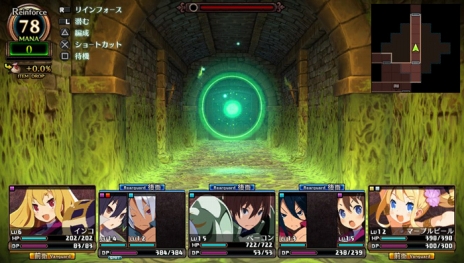 ダンジョンとなるルフランの地下迷宮には,人形兵で構成された集団“カヴン”を最大5つ引き連れて挑むことができます。ダンジョンは入り組んだ構造をしており,視界に見える敵の様子や右上に表示されたMAP,自身の現在位置等に注意しながら,慎重に探索を進めていきます。