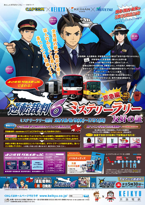 「逆転裁判6」,3都市3鉄道でミステリーラリーが6月9日から開催。賞品の情報も公開