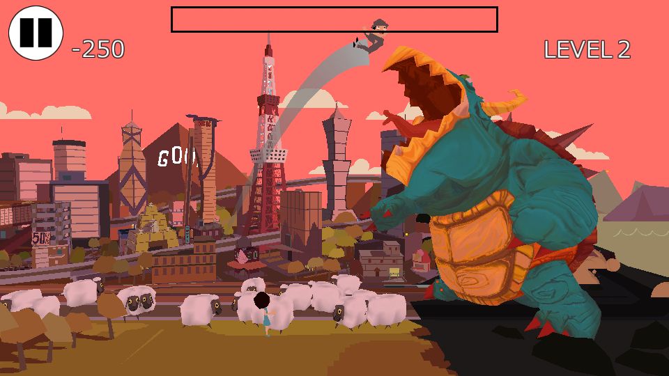 「怪獣VSひつじ」がauスマートパスで配信開始。ひつじを投げて怪獣を倒そう