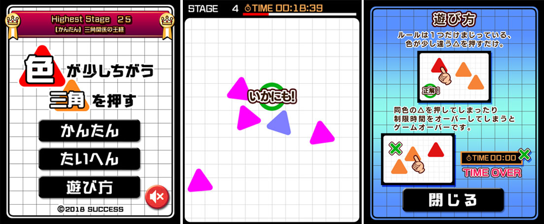 「大人ゲーム王国 for Yahoo!ゲーム かんたんゲーム」,ゲーム「色が少しちがう三角を押す」が登場