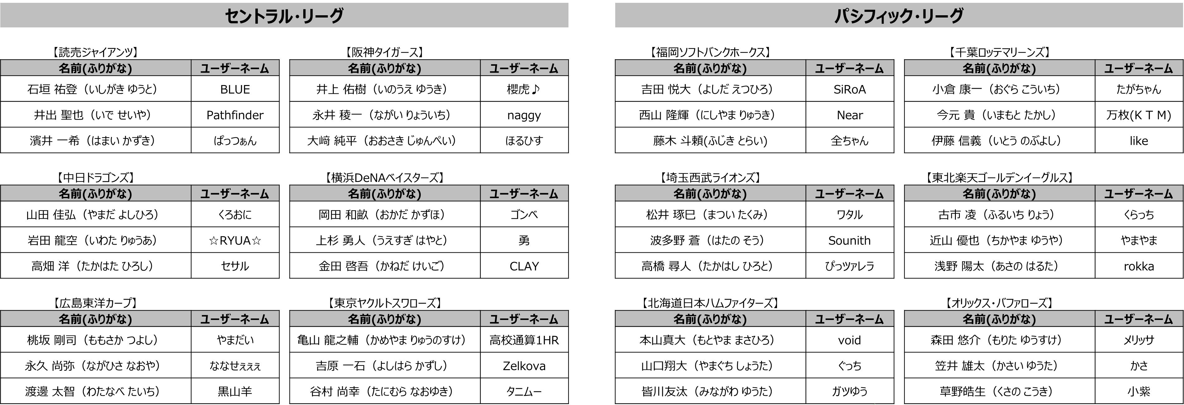 「eBASEBALL プロスピAリーグ」2021 シーズンのプロ野球12球団代表選手36名が決定